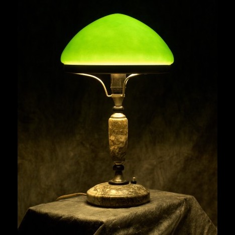 Мраморная лампа — «Сталинка» с зеленым абажуром. 1952 год.