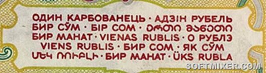Между прочим, очень показательно, что именно эта надпись исчезла с купюр образца 1991 года. Ничего не изменилось — Ленин на своём привычном месте, размер, цвет, рисунок. И только вот эти надписи на языках национальных республик исчезли…