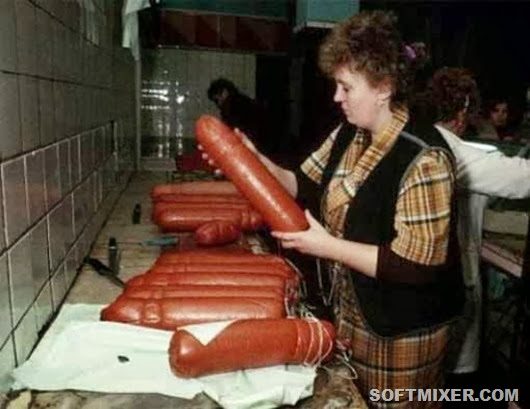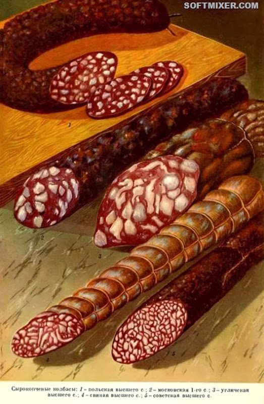 Как выяснилось, высокие технологии позволяют использовать в колбасе не самое лучшее сырье. Мало того, на Западе вообще мясо даже первого сорта не принято пускать на колбасу, оно идет только в продажу. Ну не совместимо качественное сырье с рыночными отношениями! И как раз иностранцы очень высоко ценили именно наши колбасы, отдавая им должное при посещении СССР.