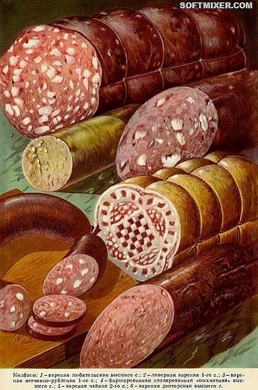 Аналогично на 100 кг Докторской шло 25 кг говядины высшего сорта, 70 кг полужирной свинины, 3 кг яиц и 2 кг коровьего молока. Колбасы с таким составом действительно были уникальными по качеству и пищевой ценности! Если, конечно, часть сырья не уходила «налево»…