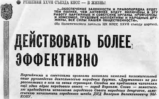 Добровольность была условной. Люди на предприятиях шли дежурить, только ради отгулов. Ходили по центральным улицам, и старались не вмешиваться в конфликтные ситуации. При первой же возможности снимали повязки и шли выпивать… Или в кино. Или домой — у кого какие интересы))