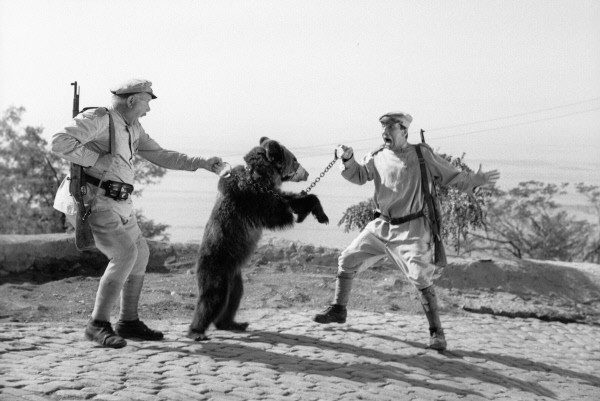 Савелий Крамаров (справа) в роли конвойного в художественном кинофильме «Новые приключения неуловимых мстителей» (режиссер Эдмонд Кеосаян). 1968 год.