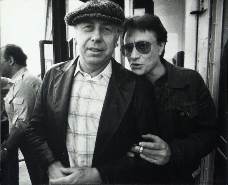 И вот мы пришли на прием. Дом в шесть этажей возвышался над Большим каналом. Внизу был гараж, в котором держали все — от шлюпки до подводной лодки. На втором этаже стоял архитектор в белом смокинге, за ним чуть ли не в латах — какие-то рыцари, а по лестнице, по ковровой дорожке, перся наш обшарпанный прославленный коллектив (обшарпанный — в буквальном смысле, потому что актеры, боясь отступить от стадности, покупали, как все, — только кассетный магнитофон «Шарп», хотя там продавались любые). Гости протягивали архитектору ложку — матрешку, матрешку — ложку. Архитектор хватал подарки и со словами «грация», «белиссимо» швырял их в какой-то предбанничек. А тут я — с «Першингом» и «Ромео и Джульеттой». Когда я их ему протянул, он взял меня под руку и повел в хоромы.