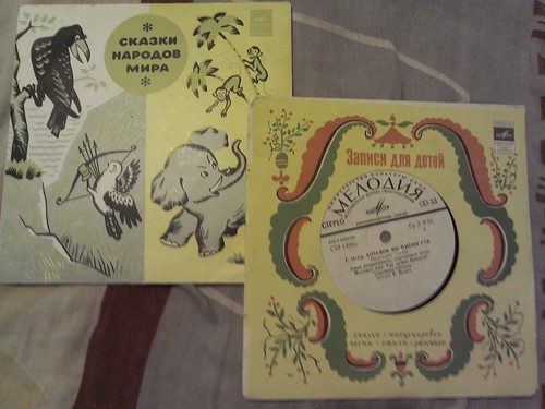 Вот, напрмер, про курочку Рябу и репку. Ещё в полиэтиленовых конвертах были какие-то умные пластинки. Логопедические. Их, естественно, я не слушал.