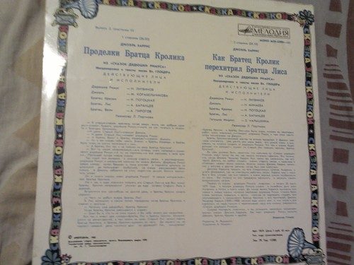 А вот эта пластинка мне очень нравилась. Хотя одну сказку я старался пропустить. Я был очень сентиментальным ребенком и мне было очень грустно, когда я слушал сказку про паука и особенно, когда паук пел свою песню.