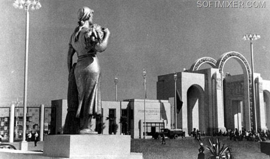 Была построена Арка Главного входа на Выставку. Мощные четырехгранные колоны легко несут массивную арку, разделяя ее на центральный и боковые пролеты. На колоннах барельефы, основная тема которых – труд людей. Венчает арку скульптурная группа «Тракторист и колхозница», с высоко поднятым снопом пшеницы.