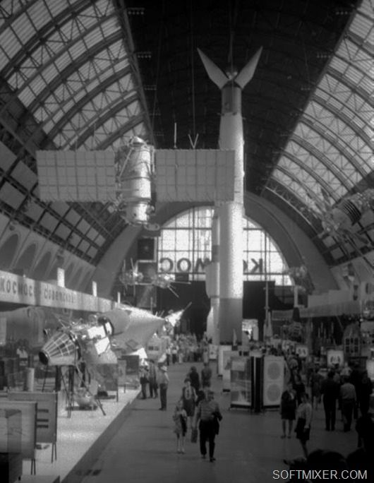 После первого полета человека в космос, в 1961-м году, выставку, помимо всего остального, украсила копия ракеты Гагарина. Она, между прочим, была установлена на Площади механизации, в том самом мистическом центре, где, по планам Олтаржевского, должна была возвышаться фигура тогдашнего вождя.