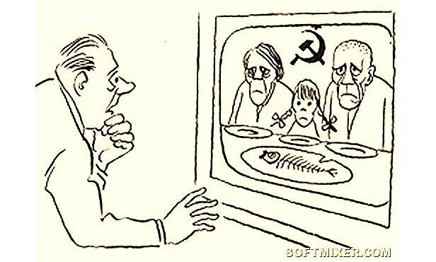 На каждого советского человека существует досье в КГБ, все квартиры прослушиваются, а по улицам за простыми гражданами осуществляется слежка. Все как в романе Оруэлла «1984». Разумеется, симпатизировать такому государству могли только самые большие оригиналы на Западе.