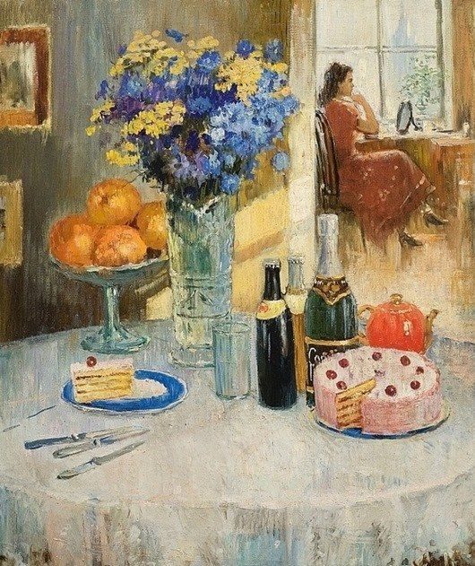 Крашеные табуреты, ковры с цветными ромбами, портреты вождей, керосиновые лампы, печи, семейные фото, натюрморты, деревянные антресоли – многие из этих предметов можно было встретить практически в каждой советской квартире. Они нашли свое отражение и в картинах того времени.