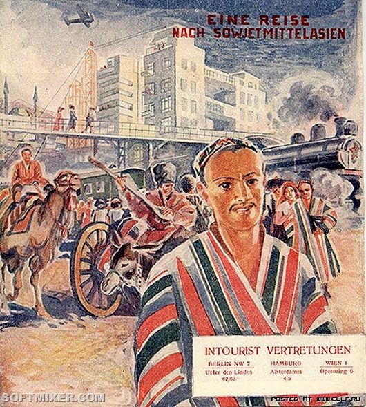 На рекламных плакатах и брошюрах того времени можно найти не только изображения Ленинграда и Москвы. Интурист приглашал иностранцев едва ли не во все интересные уголки СССР: на Кавказ, в Среднюю Азию, круизы по Волге и даже в Магнитогорск.