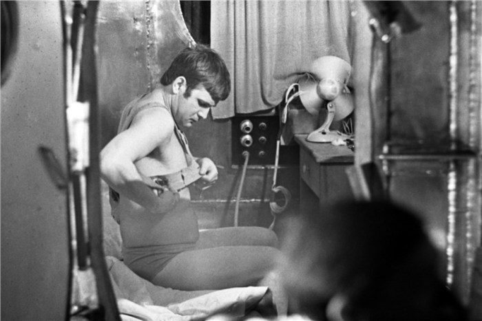 На фото запечатлен момент подготовки ко сну участника шестимесячного эксперимента в «БИОС-3» Николая Бугреева, фото 1973 года.