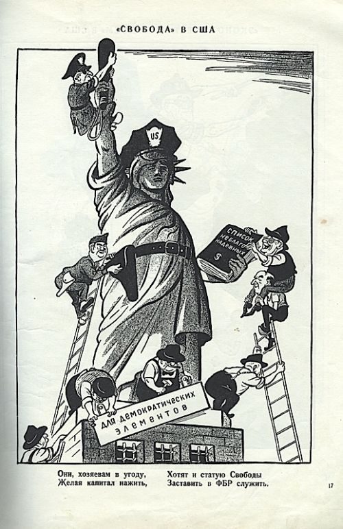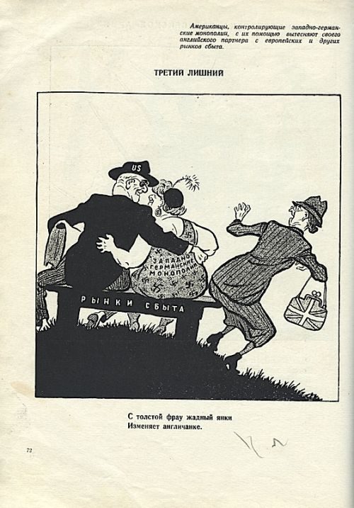 Эти карикатуры можно приписать и к ссср, только вместо надписей usa и абревиатур доллара можно пририсовать серп и молот, получится та же петрушка только наооборот. СССР и США две имперские пропагандиские машины, сметающие любые ценности на своем пути и поглощая другие народы. Только вот одна машина прошла тюннинг и стала РФ, а вторая так и осталась с тем же логотипом.