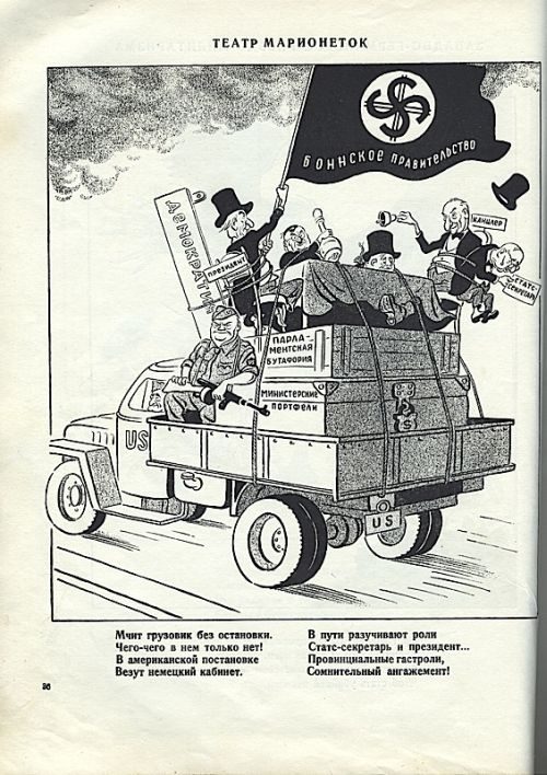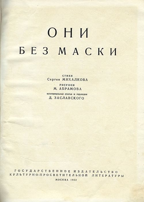 В 1952 году вышла книга антизападных карикатур Марка Абрамова со стихами Сергея Михалкова «Они без маски».
