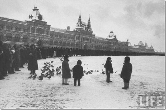 Как же холодно на улице, а на ногах у женщин, у тех, что попроще — валенки, остальные — в туфлях или ботах. БРРРР!!!