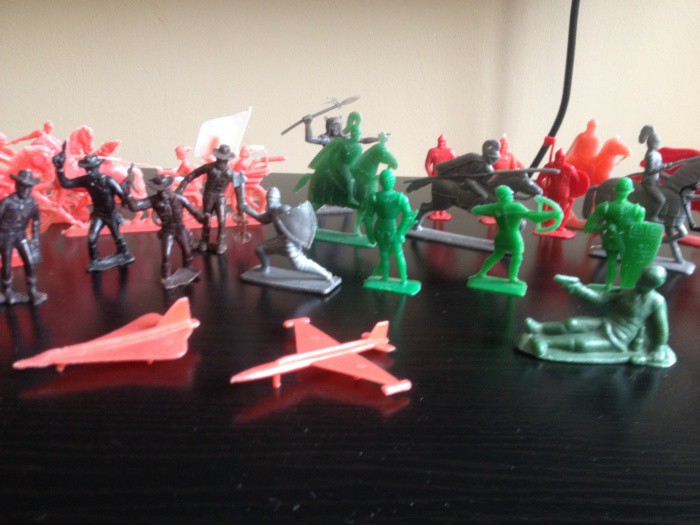 Какие бои разворачивались дома с друзьями!!! Взятие крепостных стен, вырезанных из ватмана. Солдатики выстраивались в боевые шеренги… По шеренгам велся огонь резиновыми пульками из пушки. Здорово было. И никаких электронных прибамбасов, даже представить подобное тогда ни я, ни мои ровесники не могли. «Ковбойцы»и индейцы-мечта каждого из нас в те годы. Мне привезли их набор из Макеевки с оказией. До этого пускал слюни, наблюдая такие экземпляры у других. Еще были ГДР-овские резиновые содаты. Такие же индейцы в полной боевой раскраске. Менялись меж собой… Выменивали их на всякую всячину. Еще у меня был набор металлических солдатиков «Ледовое побоище», подаренный за примерное поведение и стойкость, продемонстрированные у стоматолога))))