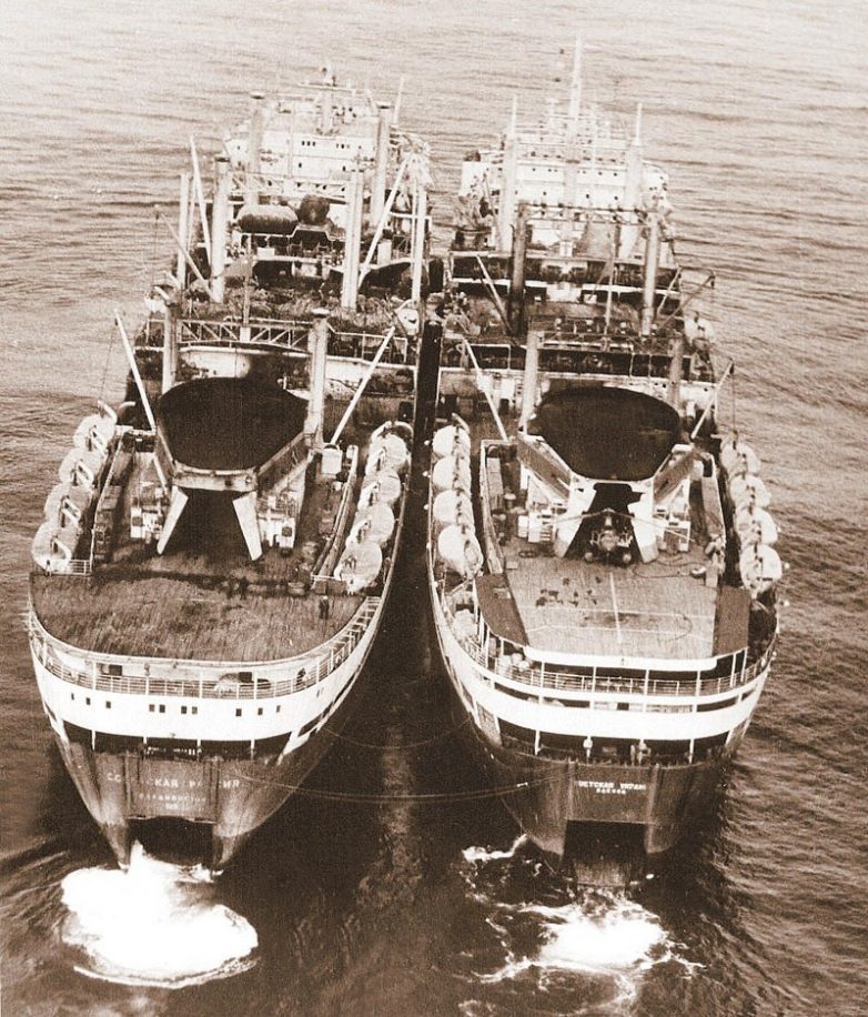 Китобазы-близнецы «Советская Украина» и «Советская Россия», построенные в Николаеве в 1959 и 1961 годах. Каждая из них перерабатывала до 75 китовых туш в сутки