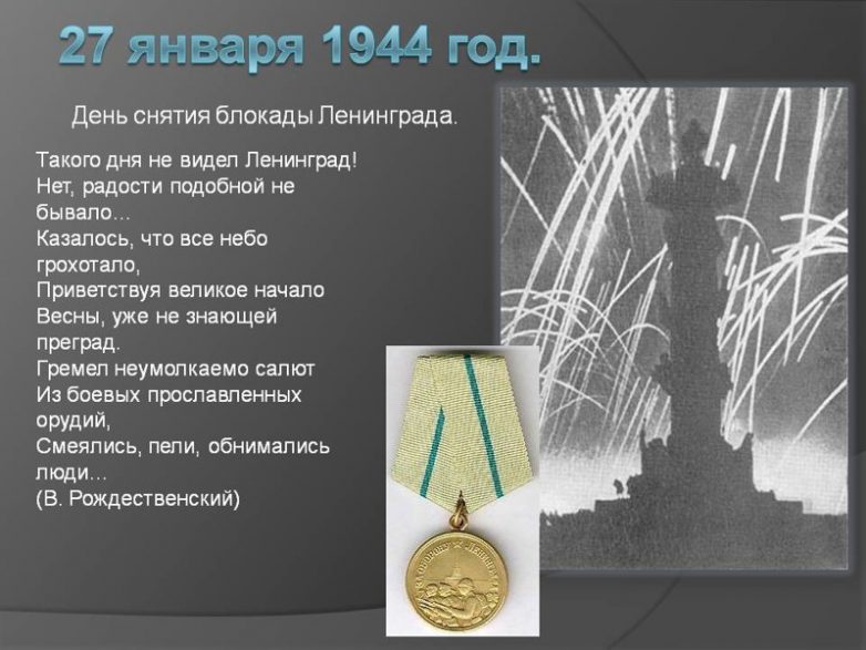 27 января, 2016 года — 72-я годовщина снятия блокады Ленинграда