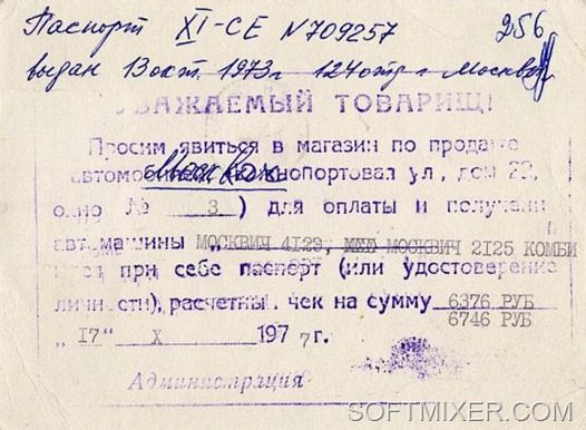 Что за это имело «начальство», сказать трудно, но, вероятно, его деятельность не была совсем бескорыстной. В 60-е годы очереди составлялись уже непосредственно в магазине. Сроки были такие: записавшиеся в 1956-м году на 401-й 'Москвич' получали в 59-м уже 407-й, а записавшиеся в 1959-м на 'Волгу' могли выкупить её в 66-м за немалые 5500руб.