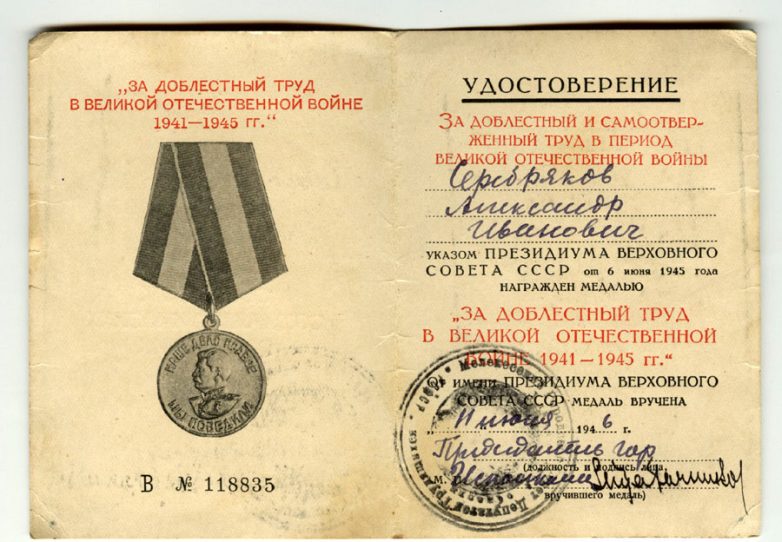 В 1943 году Александру Серебрякову, как особо ценному специалисту дали отсрочку от призыва.