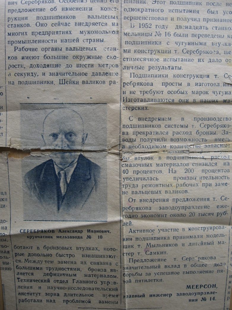 Работая на заводе Александр Серебряков внедрил несколько значимых для мукомольной отрасли рацпредложений.