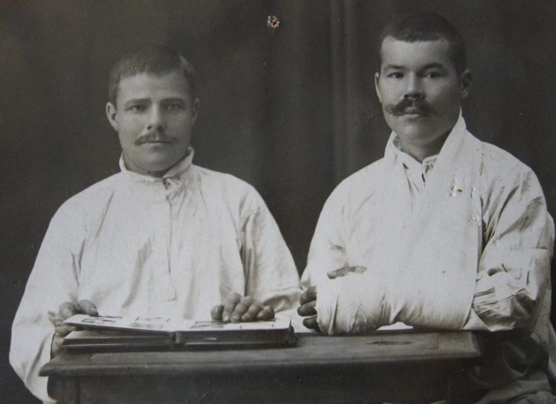 2 октября 1914 года Василий Кузьмич после ранения (справа). Первая мировая война.