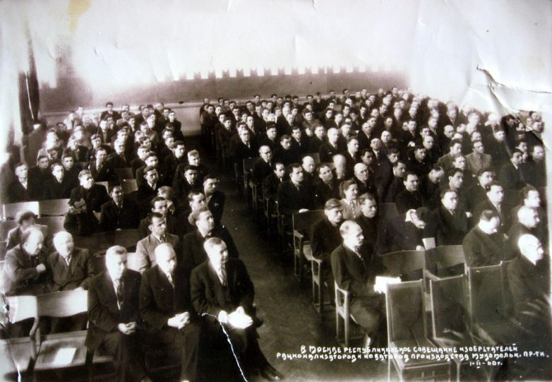 Александр Иванович Серебряков в числе участников Всесоюзного совещания изобретателей, рационализаторов и новаторов мукомольной промышленности. Москва, февраль 1960 года.