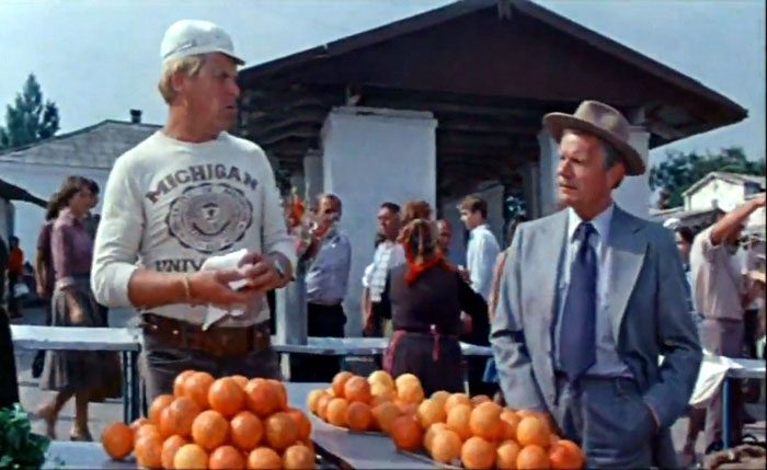 Необычайно популярная комедия Леонида Гайдая, как и все гайдаевское, благополучно растащенная на цитаты: «Кому апельсины, кому витамины? … — Рубль — штучка! Три рубля — кучка! В кучке три штучки».
