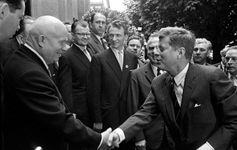 на фото :1961 Никита Хрущев и Джон Кеннеди