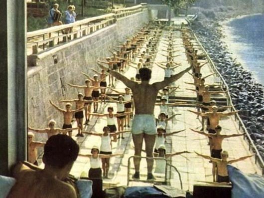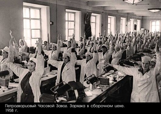 Руки вверх“. Помимо гимнастики дома на многих предприятиях СССР проводили гимнастику всем коллективом (цехом, отделом), которая транслировалась по всесоюзному радио в 11 часов…