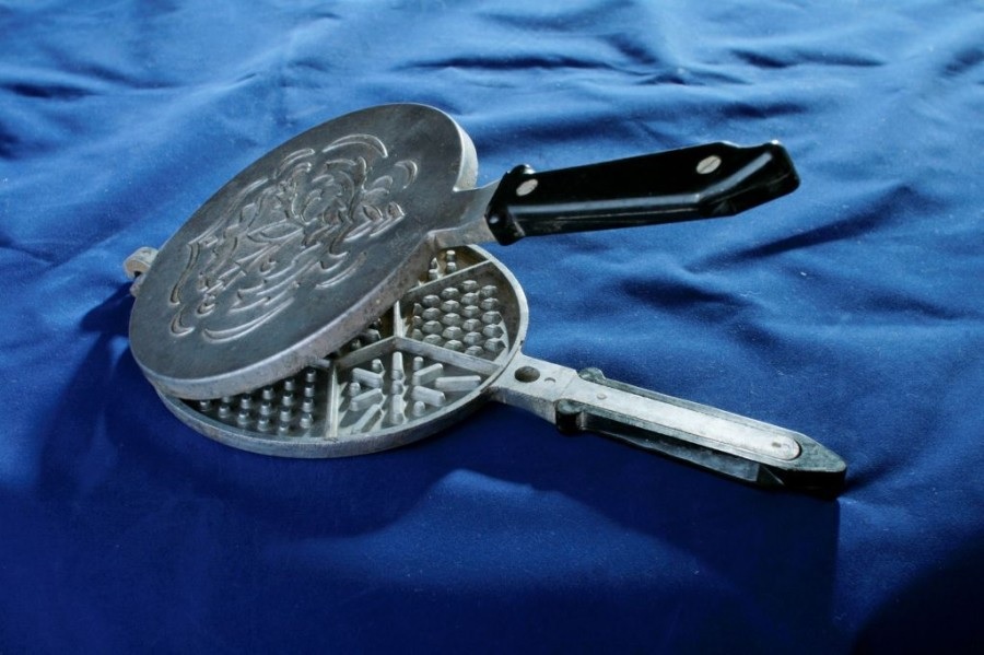 Итак, на фото вверху – советская вафельница. Тяжеленная двойная сковорода из чугуна. Они бывали еще электрическими, но эта – для газовой плиты. Почему тяжелая? Все просто. Даже такой агрегат с трудом держал постоянную температуру. А это было крайне важно для выпечки.