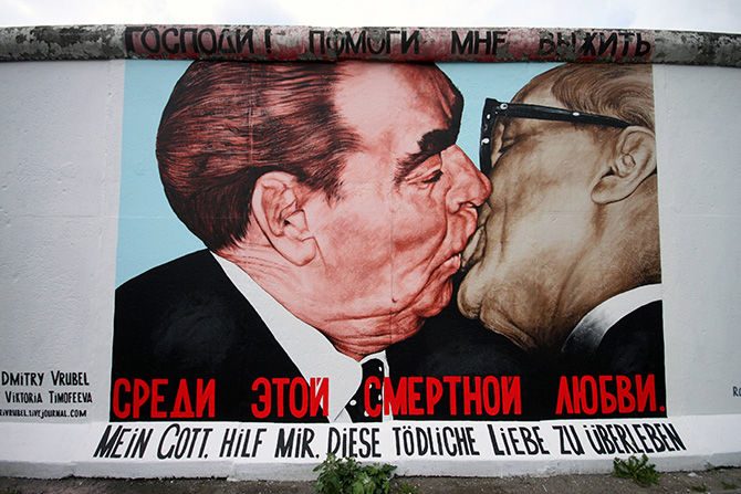 Поцелуй Брежнева и Хонеккера. Граффити на Берлинской стене