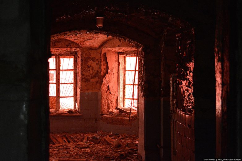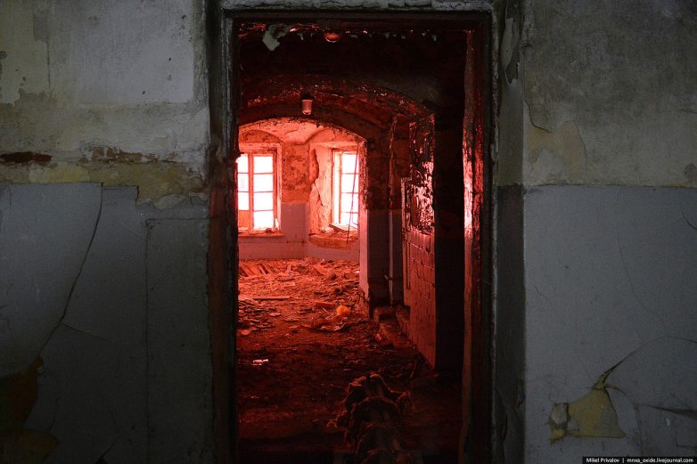Заколоченные ходы в жилую часть здания. Вообще таких переходов много. Но все они заложены кирпичом/наглухо замурованы.