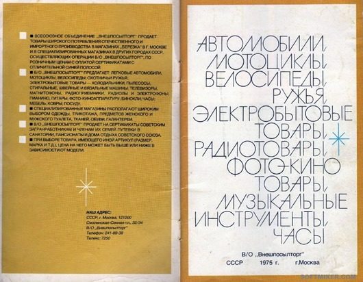 Что можно было совершенно свободно и без очереди купить в Советском Союзе в 1975 году в сети фирменных магазинов «Березка» на сертификаты Всесоюзного Объединения «Внешпосылторг»…