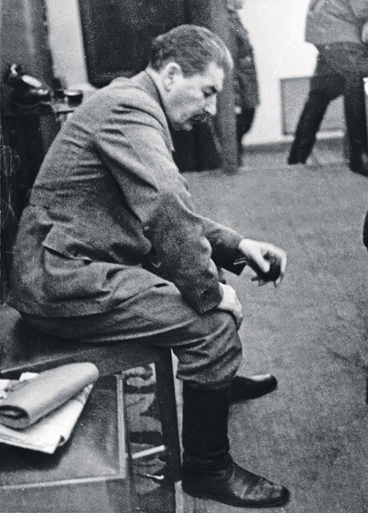 Кстати, на этой фотографии Сталин еще даже и не седой, а если есть седина, то ее немного. На, пожалуй последней, довоенной хронике, 1 мая 41-го года, той самой, где Сталин прохаживается по трибуне Мавзолея позади Политбюро, видно, что это просто человек в возрасте и не более, но пройдет всего 2 года и… ну скажем на фотографиях в Тегеране, в 43-м, это уже совсем старик. Совсем седой и старый.