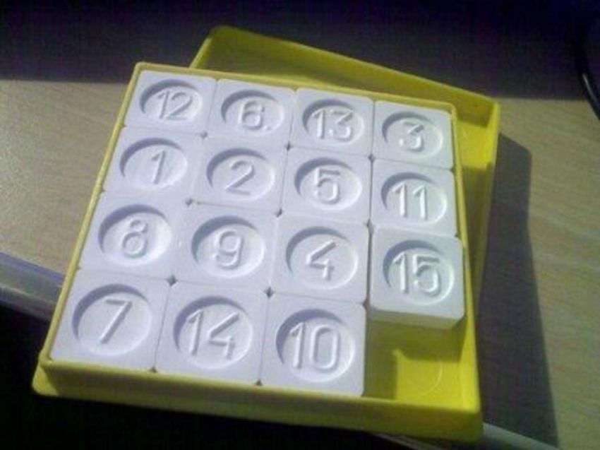 Отдельные головоломки и сейчас продаются, купил детям — качество отвратительное. Если кубик Рубика — грани перемещаются с трудом; пятнашки сделаны с пазами и выступами на торцах, чтобы не выпадали (как на 11-м фото), но в итоге плитки с числами перемещаются с трудом.