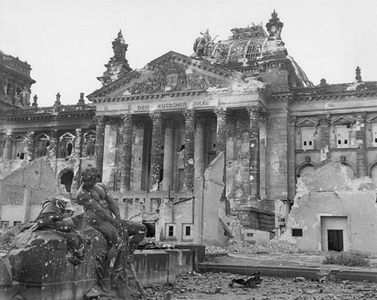 Вид на Рейхстаг после окончания военных действий.