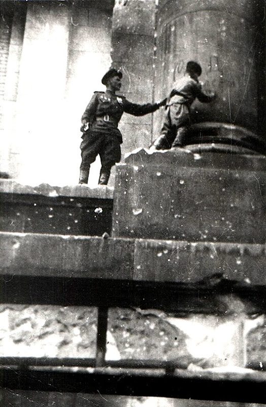 Знамя Победы над Рейхстагом. Менее известное фото.