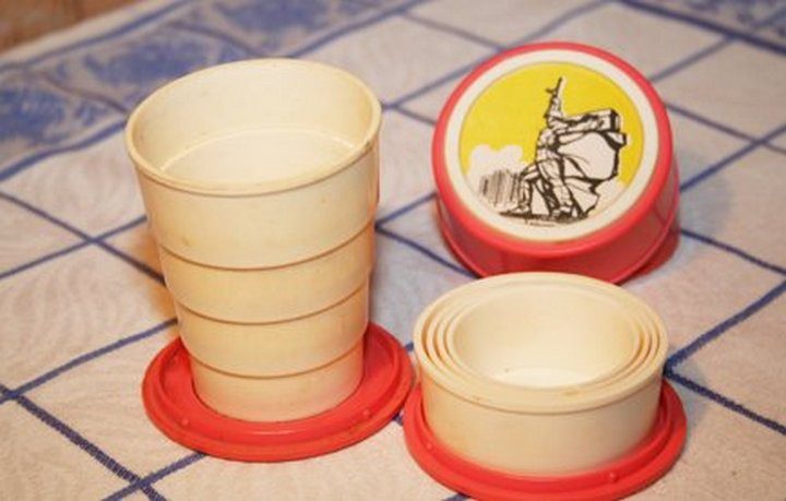 Пластиковый походной стаканчик. У нас таких было 2 штуки, сестре и мне. Я больше любила с ними играться, чем использовать их по назначению.