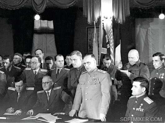 Капитуляция — это важнейшее историческое событие, и она должна быть подписана в Берлине, с присутствием верховного командования всех стран союзников. С нашей стороны решили, что её подпишет Г. К. Жуков.