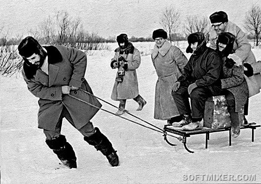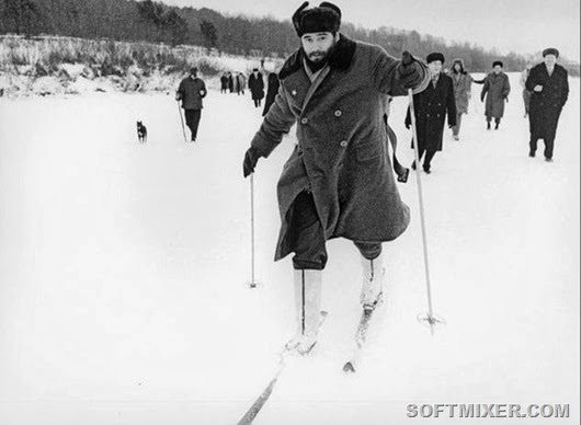 Фидель Кастро катает своих соратников на русских санках. Завидово. 1964 г. Фото В.Егорова
