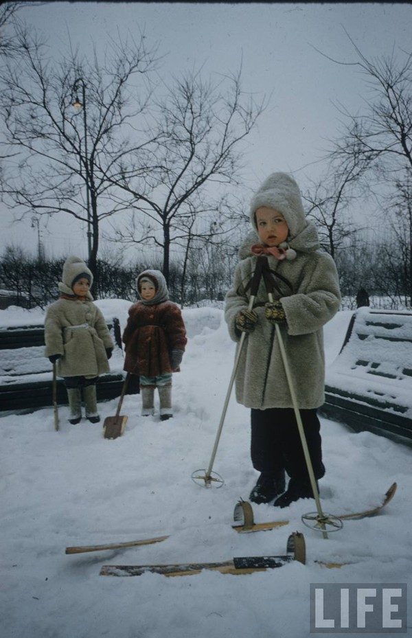 Американский фотограф и журналист Карл Миданс в начале 1960-го года по заказу журнала LIFE сделал серию потрясающих цветных снимков московских детей. Предлагаю вам совершить путешествие в зимнюю Москву того далекого времени и узнать, как выглядела столица и ее маленькие жители.
