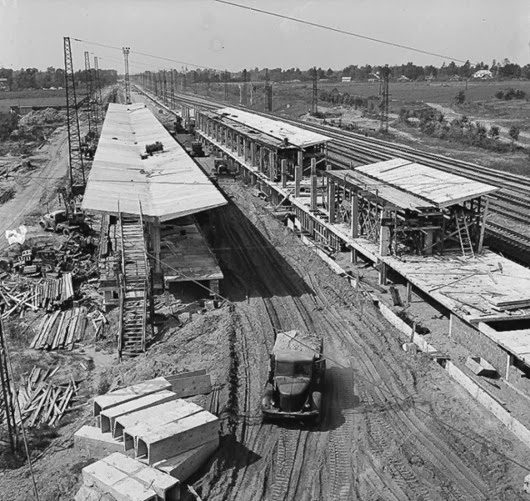 «На дальней станции сойду...» — нет, пока нельзя. Станция «Выхино» (метро+платформа ж/д) только строится. Вид в сторону Москвы. Фото: И.Иванов, 1966 год.