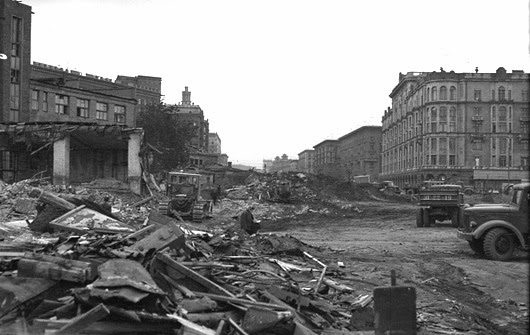 Даже не верится, что это было в 60-е. Вообще много понастроили в 60-70х. Хорошо, что одно архитектурное чудовище (гостиница «Россия») уже снесли. Еще бы два выродка Хрущева снести -одноименный кинотеатр на Пушкинской площади и Кремлевский дворец съездов.