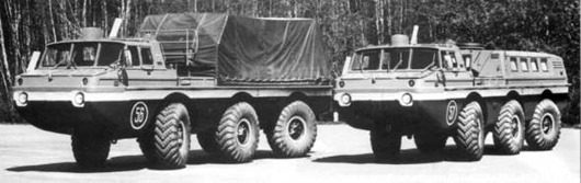 На этих амфибиях установили двигатели ЗИЛ-131 с механическими коробками передач, применили независимую подвеску всех колес, два гребных винта. Передние и задние колеса конструкторы сделали управляемыми, причем поворот задних колес начинается после поворота передних на угол больше шести градусов.
