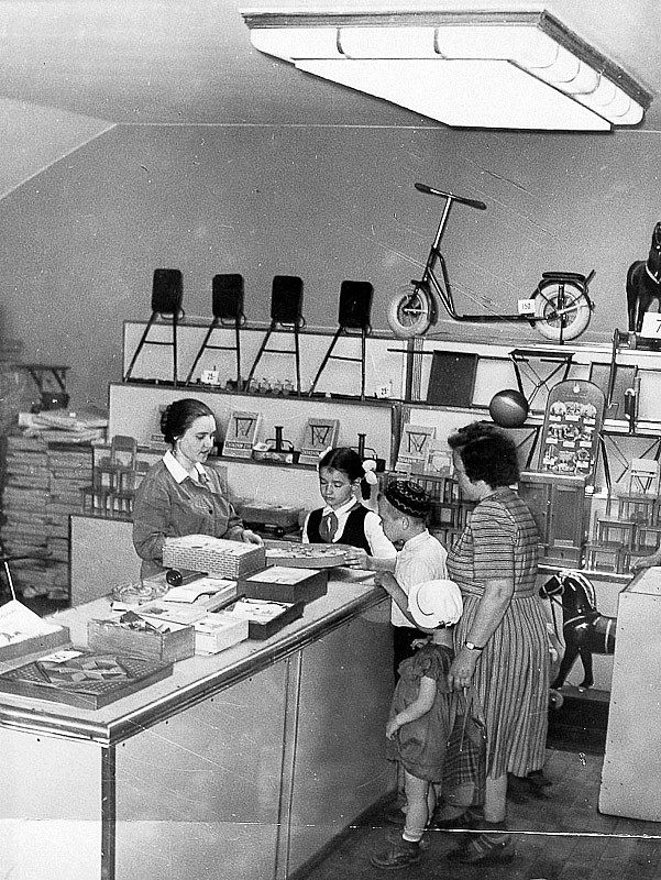 Помню т магазин, и игрушки оттуда. И железная дорога немецкая была у меня. Был на батарейке ледокол Ленин, я его даже на волге запускал, по малому кругу, чтобы он не уехал далеко. и т.д. То время было счастливое. И родители были живы, а мы, как в тылу, защищены их заботой. А потом мы сами стали родителями, и как на фронте теперь...)