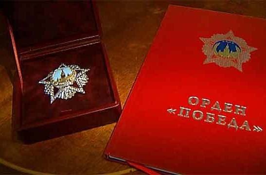 Орден “Победа” – высшая воинская награда СССР, бриллиантовый символ Победы. Всего было изготовлено 20 орденов, награждались лучшие полководцы – за победу в боевых операциях, приведших к победе Красной Армии во ІІ Мировой войне. Кавалерами ордена “Победа” стали 17 человек…