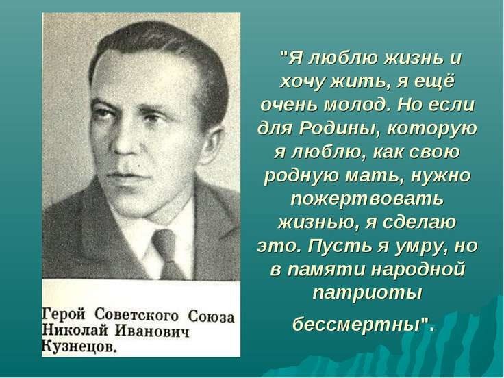 А Николаю Ивановичу Кузнецову, настоящему герою, человеку с большой буквы «Ч» СЛАВА!!! Как и многим героям, отстоявшим нашу большую Родину!