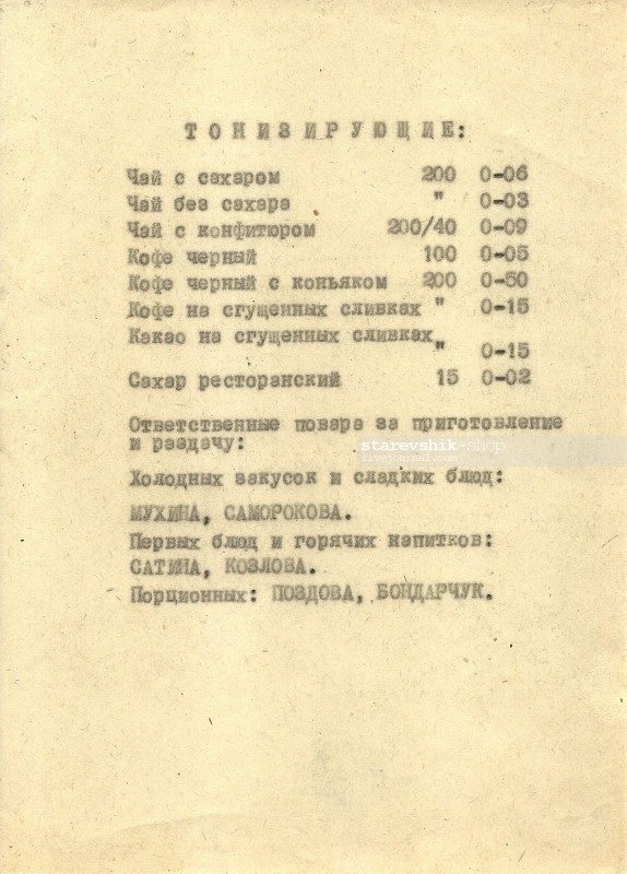 Меню советского ресторана в 1971 году