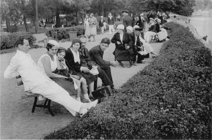 Отдыхающие на стрелке Елагина острова в ЦПКиО им С. М. Кирова. Август 1936 г. Фото В. Федосеева: