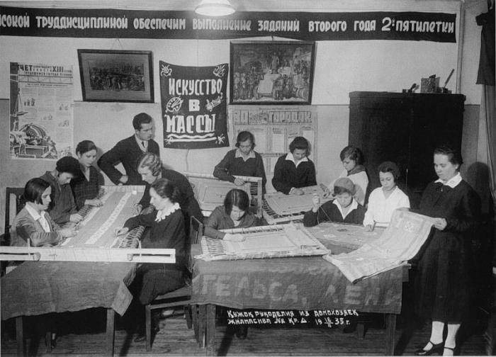 Кружок рукоделия из домохозяек жилмассива №2 Красного треугольника. 1935 г.: